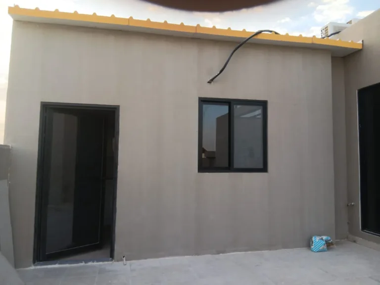 كما ننفذ بناء ملاحق ساندوتش بانل جاهزة بالكامل مع الأبواب والنوافذ والأرضيات والتوصيلات